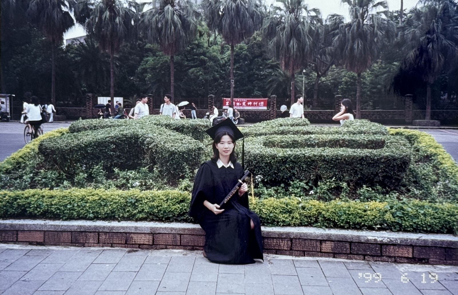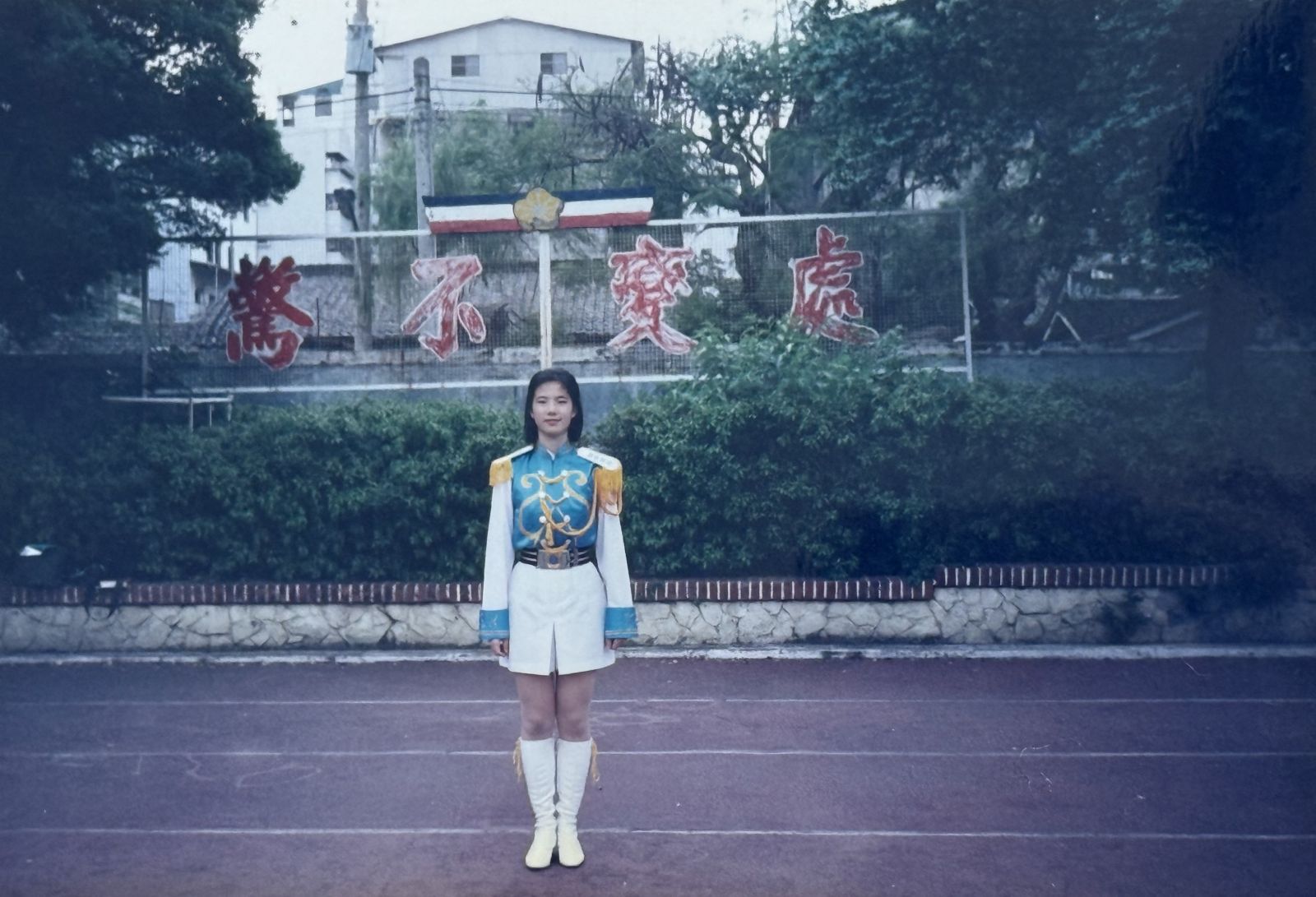 高中三年,儀隊成為她生命中重要的篇章。入學時因為身高被「強制徵召」進入儀隊,起初她還想加入國中時參加的童軍團,但最終還是接受了這個安排。在陽光下揮灑汗水,與隊友同甘共苦的日子,讓她交到許多不同班級的好朋友。即使畢業多年,臺中女中儀隊的學姊妹們仍然維持著深厚的情誼,這份傳承與連結,成為她人生中珍貴的資產。